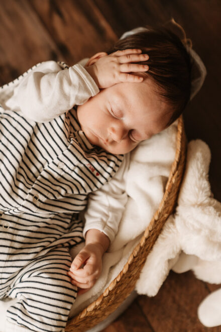 It’s ideal to schedule these sessions within the first 15 days after birth, when your little one sleeps deeply and stays more comfortably in delicate poses. However, if you prefer to capture your baby a bit more awake, a session at 2 months is also perfect for capturing those first smiles and expressions, while still preserving the softness and tenderness unique to early childhood.